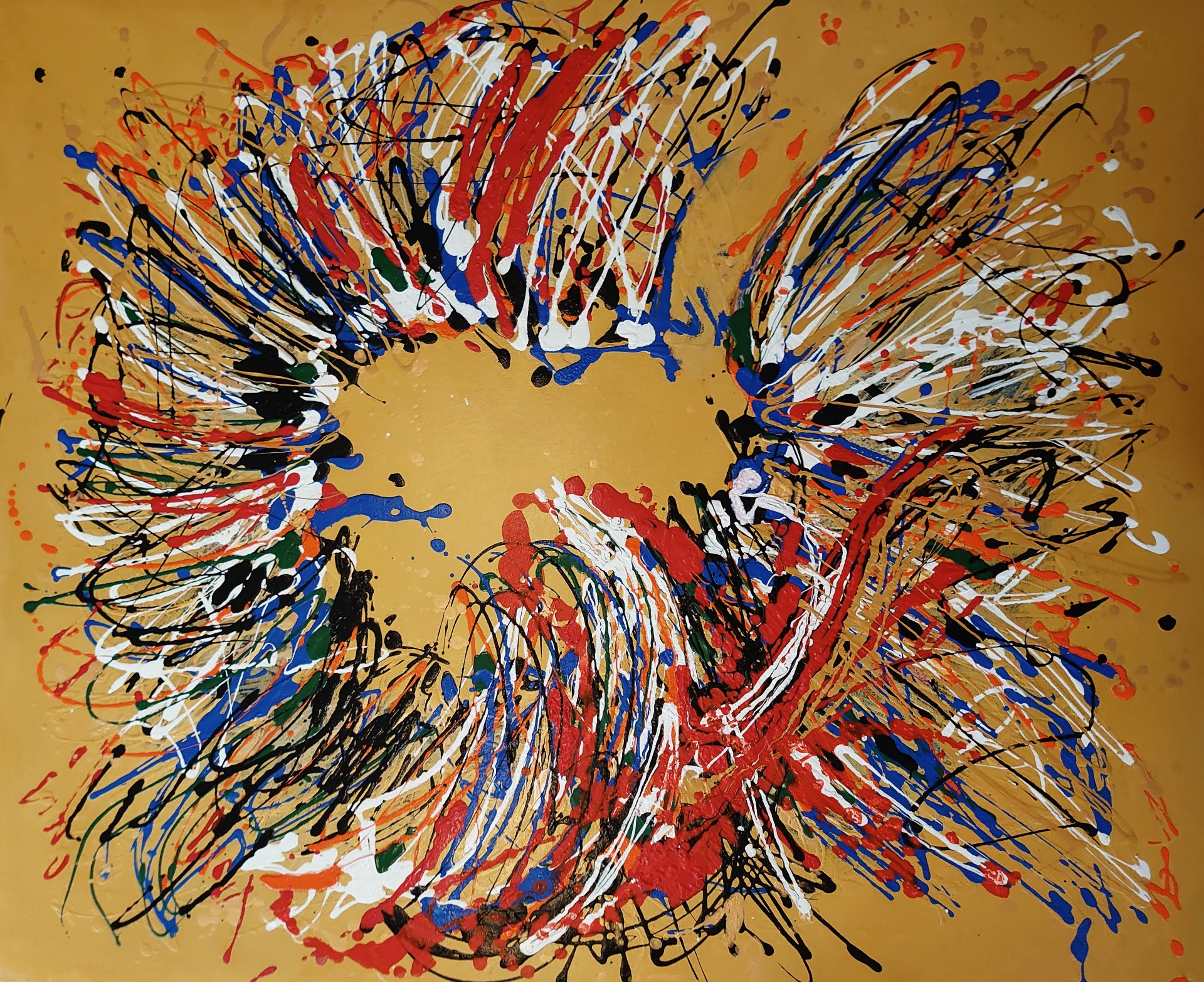 Description : A very Vibrant unique piece of Art. Varnished and ready to hang.